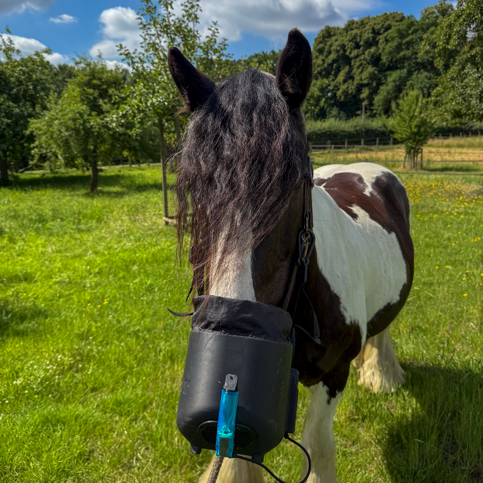 The practical design of the Equilator makes it a reliable everyday companion. The sturdy feet ensure a secure stand, regardless of the flat surface on which the appliance is used. The device is also easy to clean, which ensures hygienic use and facilitates care. The ergonomic mask has been specially developed to reduce stress for both horse and user. It is optimally adapted to the horse's anatomy, which increases both acceptance and comfort.